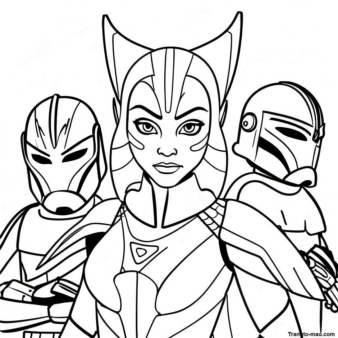 Tải xuống PDF có thể in của Ahsoka Tano Với Những Người Lính Clone Trang Tô Màu