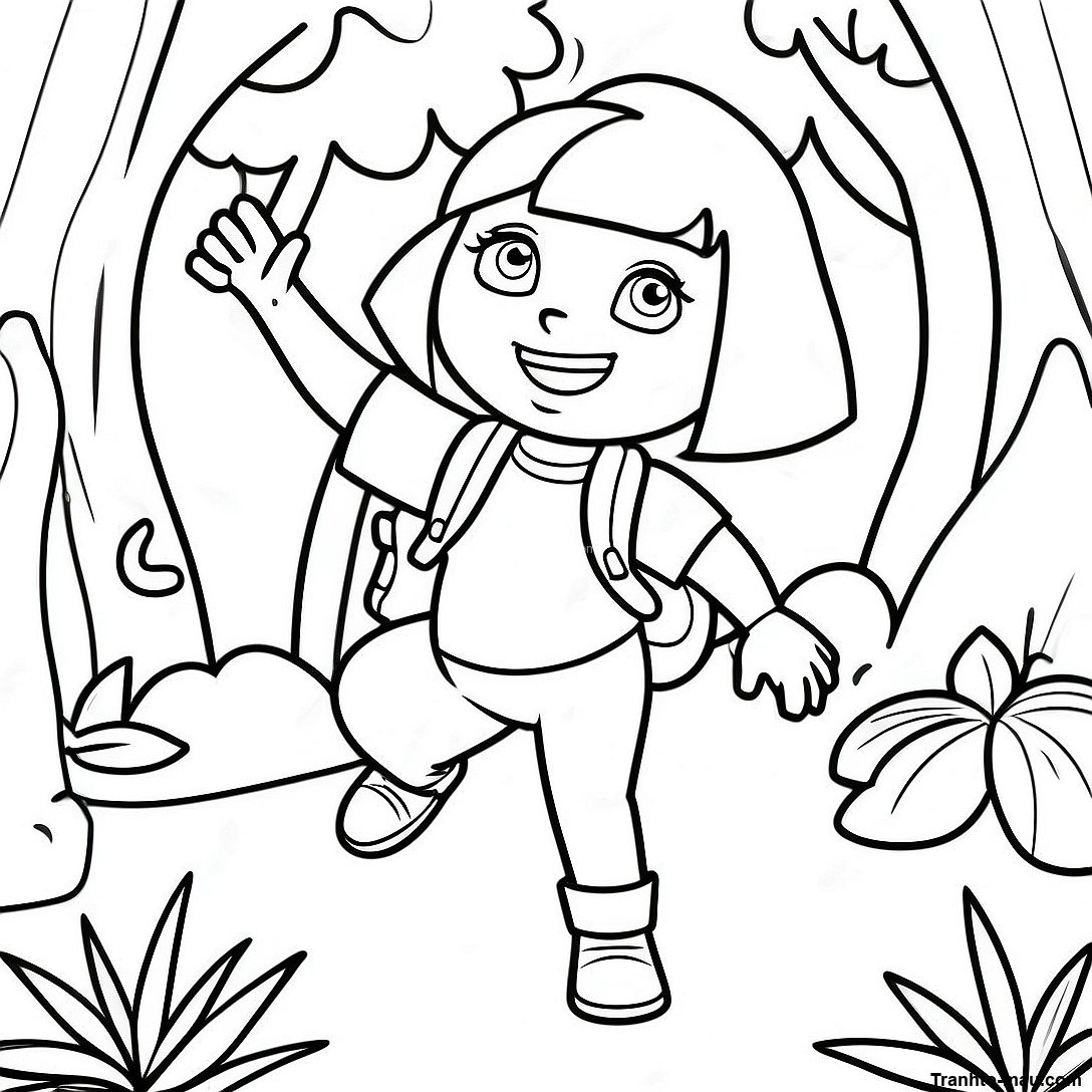 Tải xuống PDF có thể in của Bức Tranh Tô Màu Cuộc Hành Trình Rừng Của Dora The Explorer