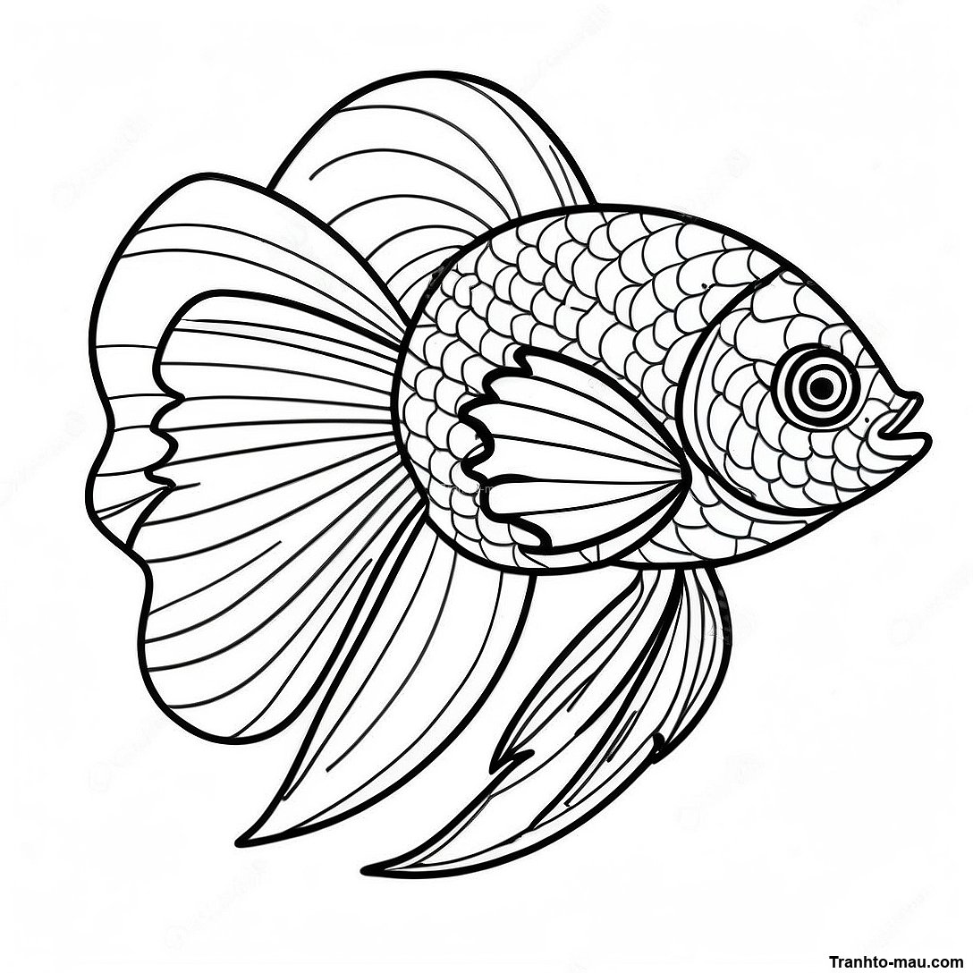 Tải xuống PDF có thể in của Cá Beta Thanh Lịch Với Vây Chảy - Trang Tô Màu