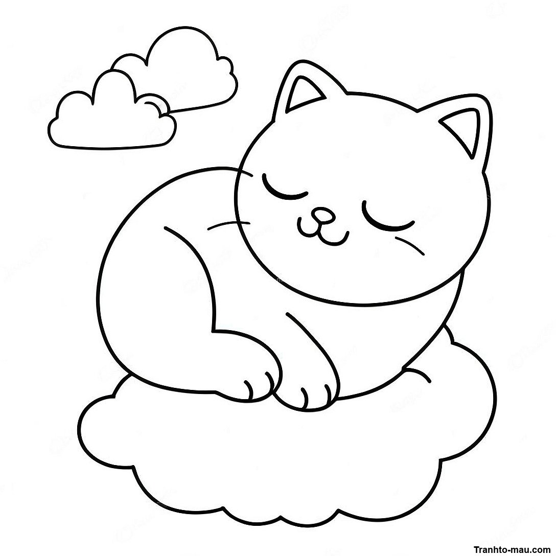 Tải xuống PDF có thể in của Mèo Anime Ngủ Trên Mây Trang Tô Màu