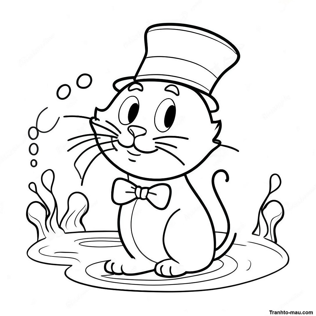Mèo Đội Mũ Chơi Với Cá Trang Tô Màu