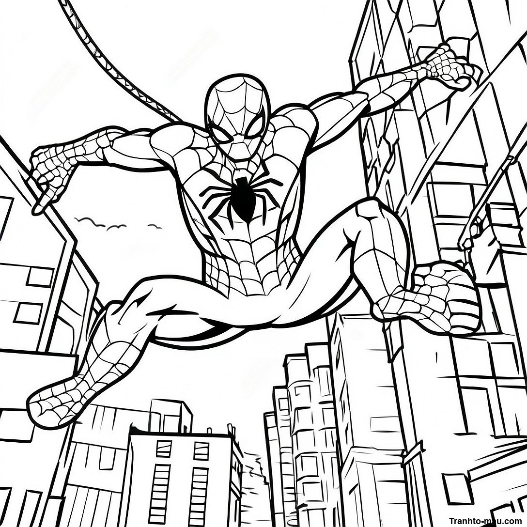 Nhện Sắt Đu Đưa Qua Thành Phố Trang Tô Màu