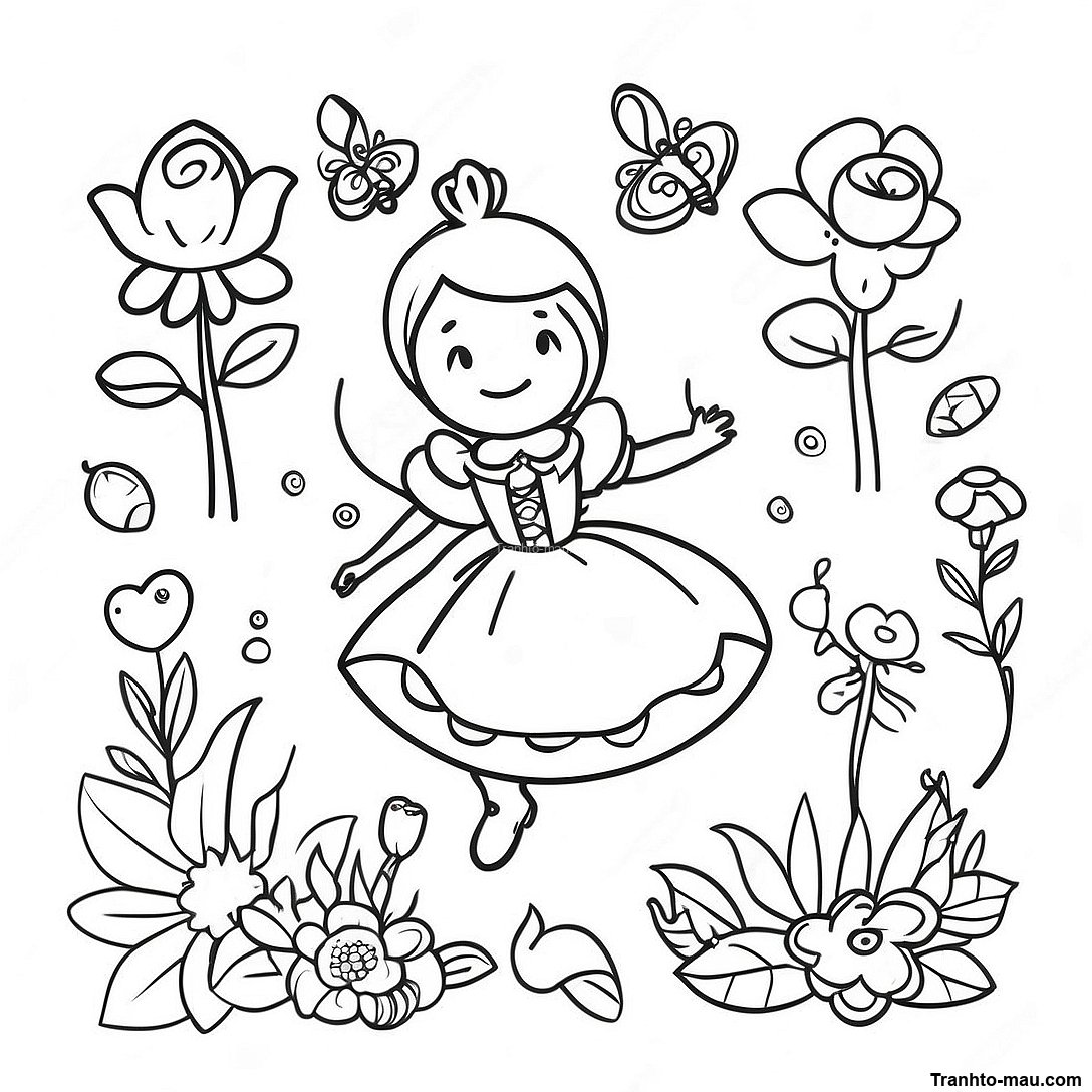Tải xuống PDF có thể in của Trang Tô Màu Alice Ở Xứ Sở Thần Tiên Với Hoa