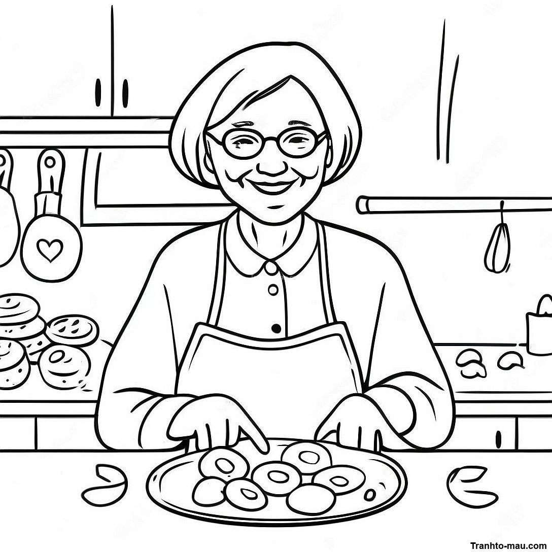 Tải xuống PDF có thể in của Trang Tô Màu Bà Hạnh Phúc Nướng Bánh Quy