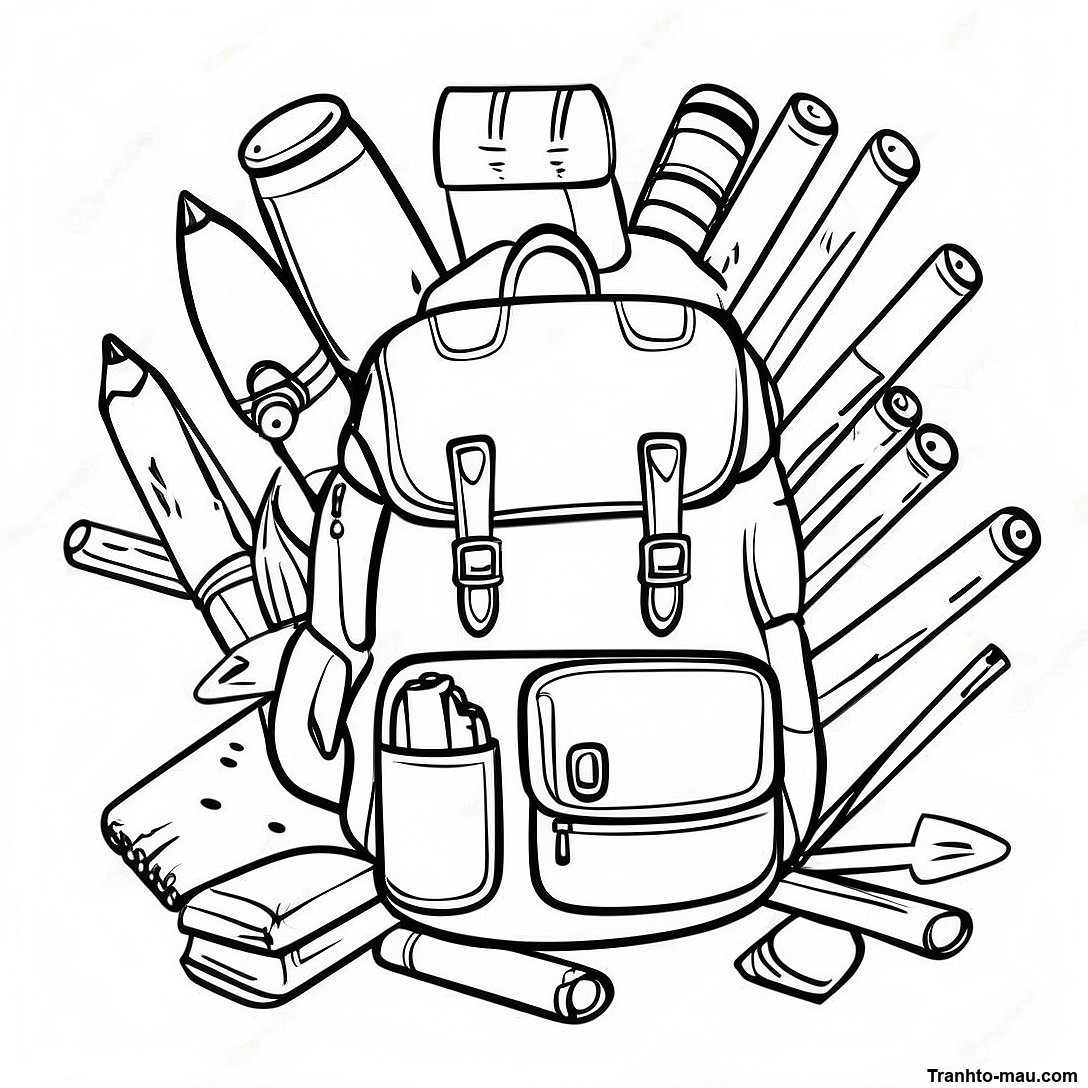 Tải xuống PDF có thể in của Trang Tô Màu Ba Lô Phiêu Lưu Với Đồ Dùng