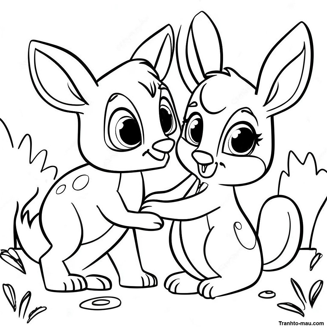 Tải xuống PDF có thể in của Trang Tô Màu Bambi Và Thumper Chơi Đùa