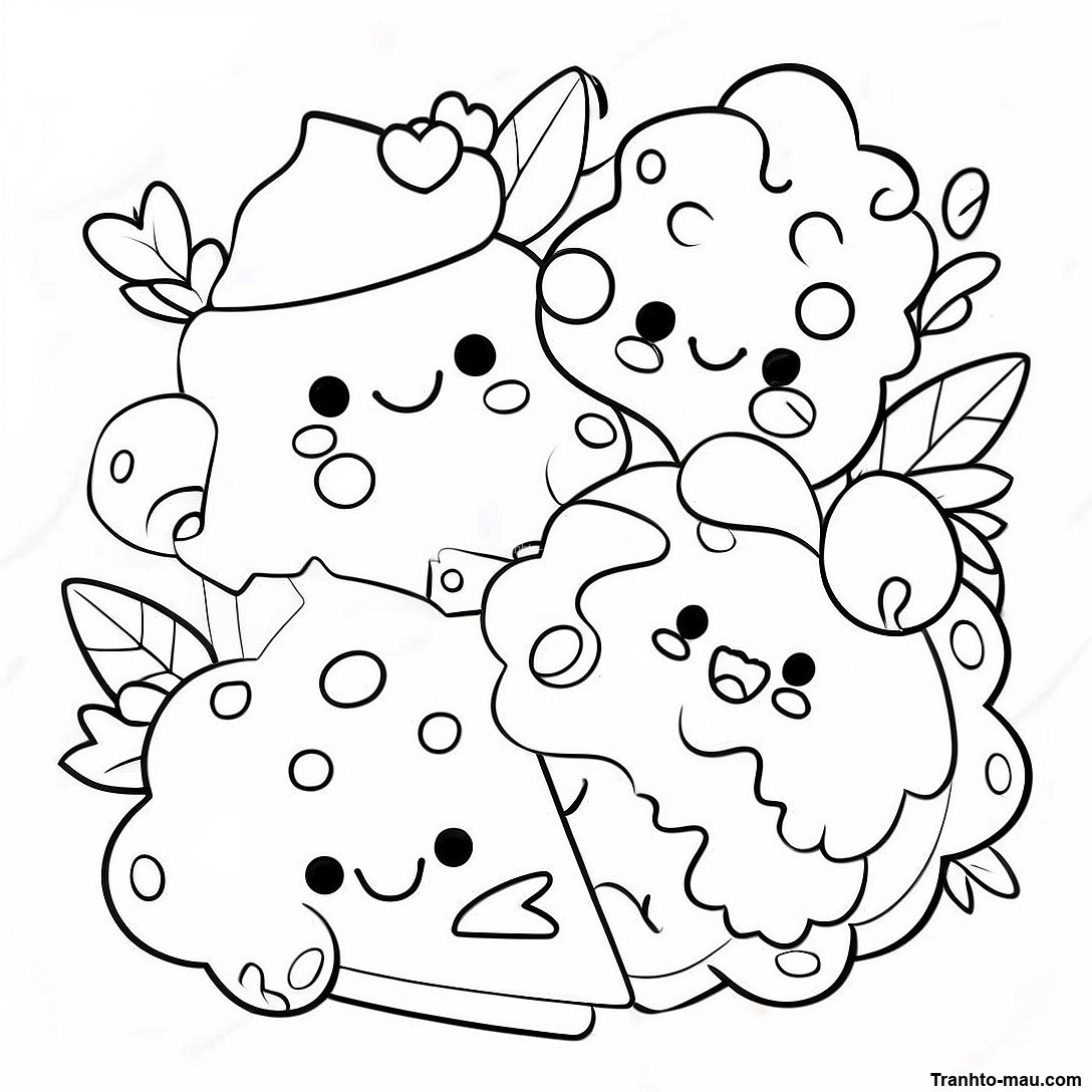 Trang Tô Màu Bạn Bè Thức Ăn Num Noms Dễ Thương