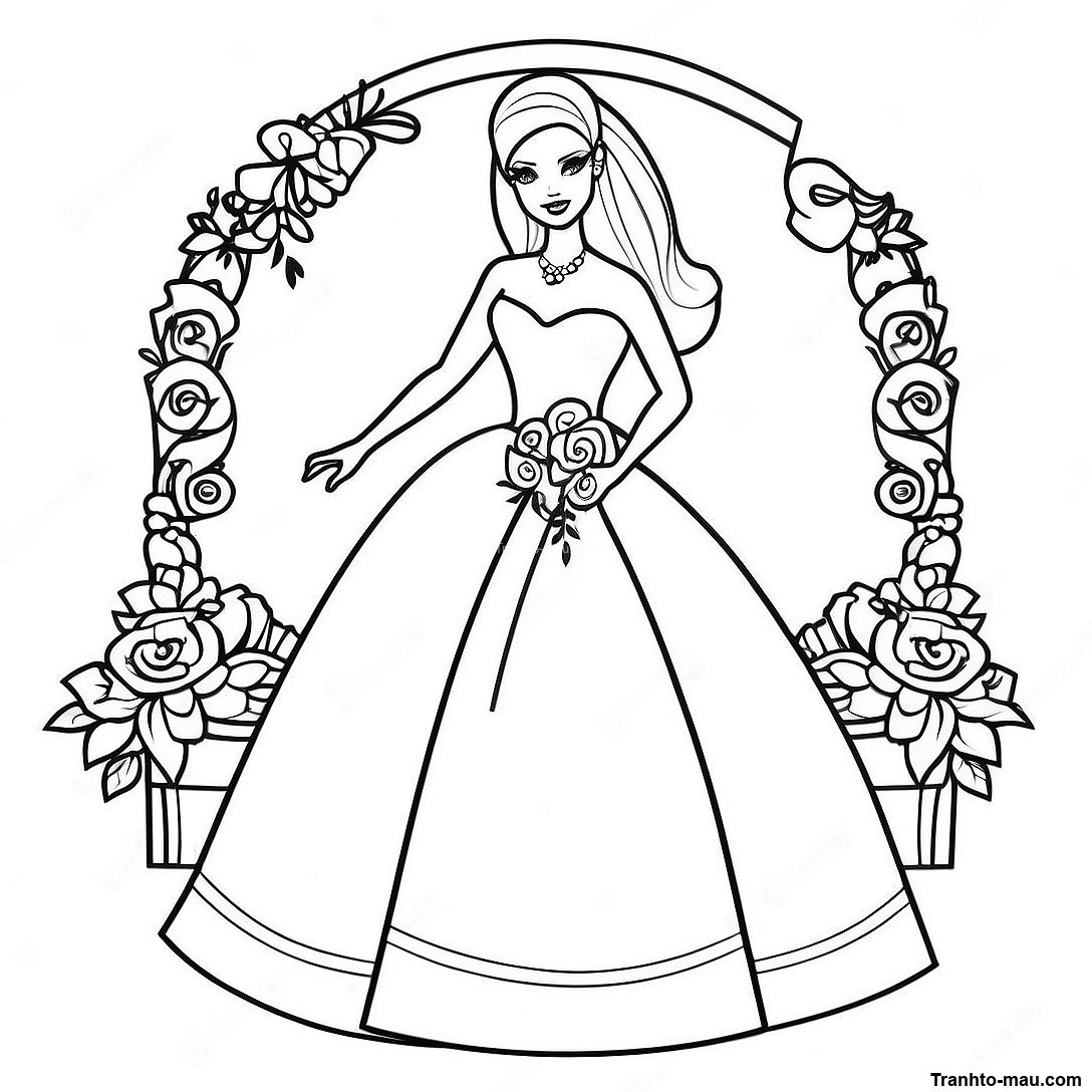 Tải xuống PDF có thể in của Trang Tô Màu Barbie Cưới