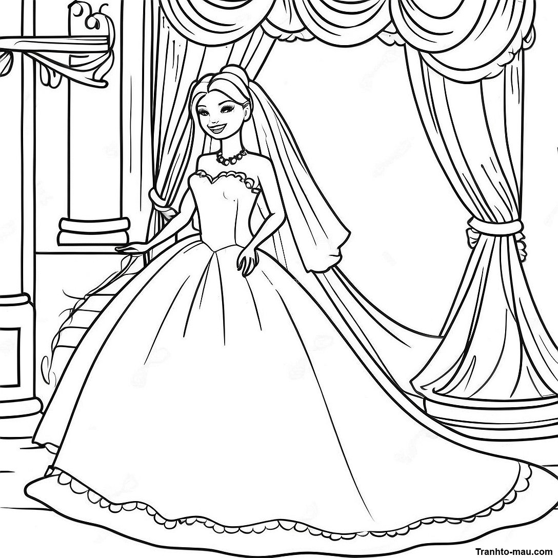 Tải xuống PDF có thể in của Trang Tô Màu Barbie Trong Chiếc Váy Cưới Đẹp