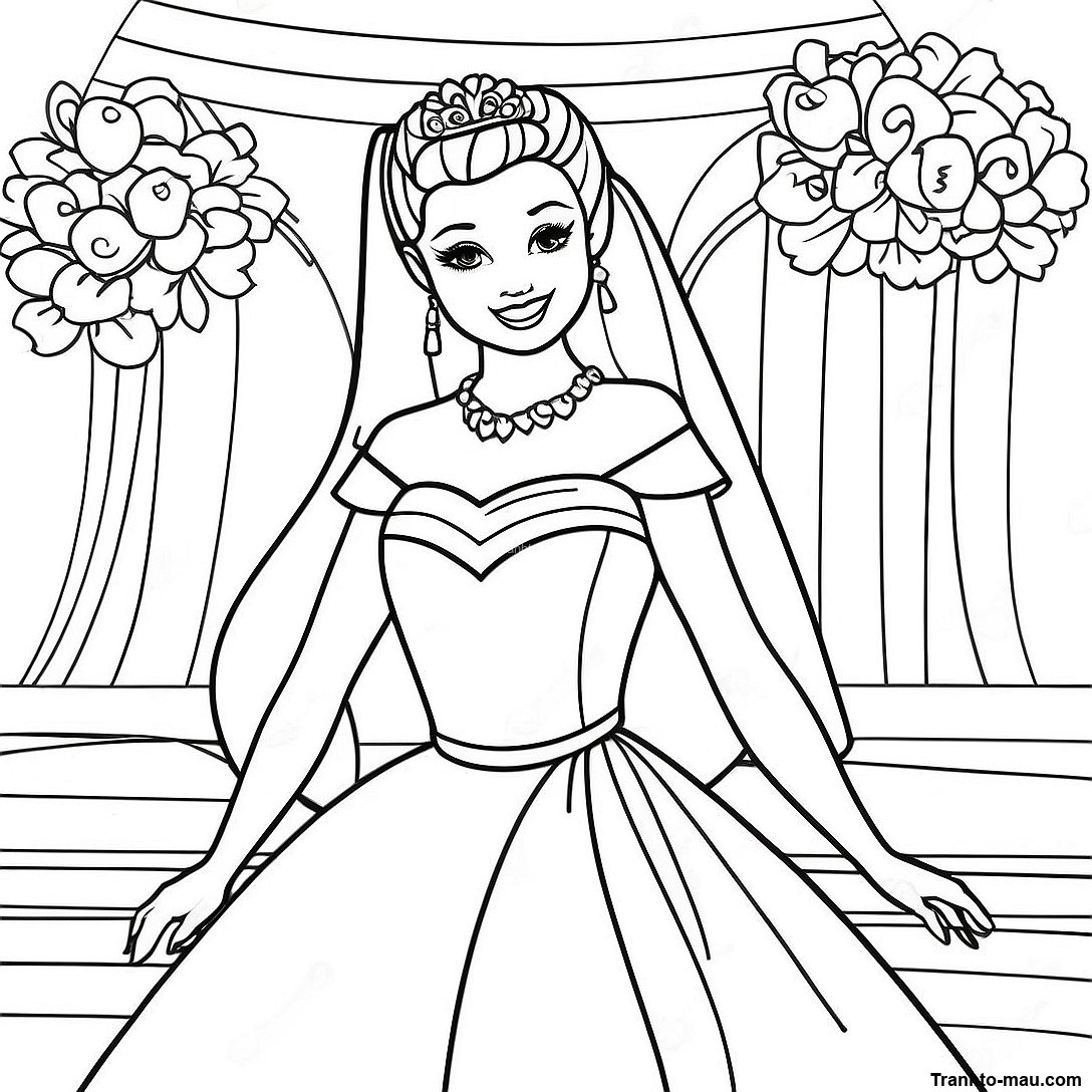 Tải xuống PDF có thể in của Trang Tô Màu Barbie Trong Chiếc Váy Cưới Đẹp