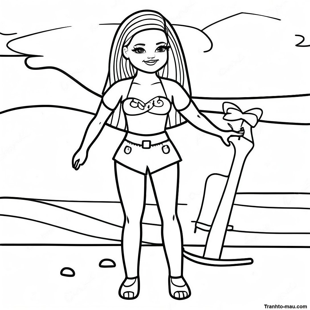 Tải xuống PDF có thể in của Trang Tô Màu Bibble Barbie Ở Bãi Biển