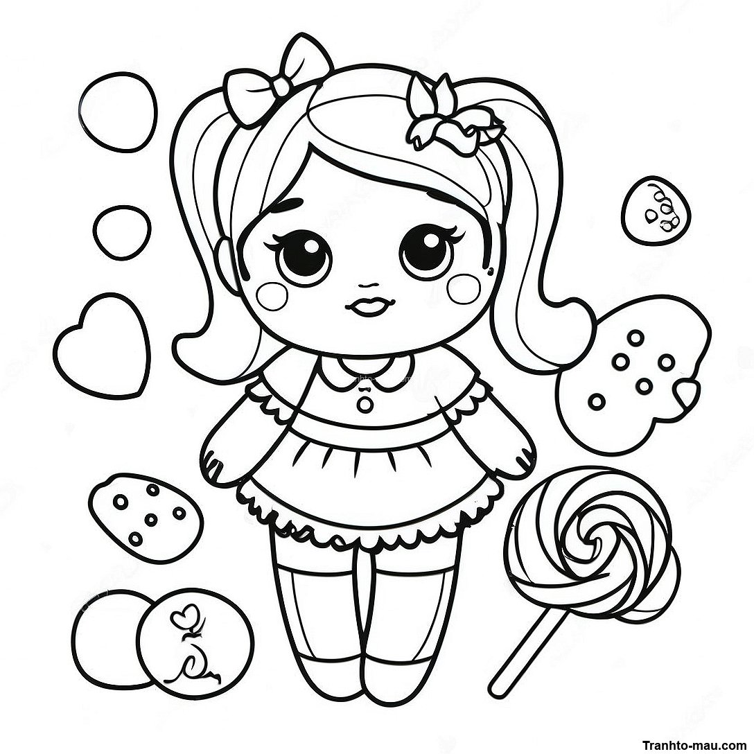 Tải xuống PDF có thể in của Trang Tô Màu Búp Bê Ngọt Ngào Với Đồ Ăn Vặt