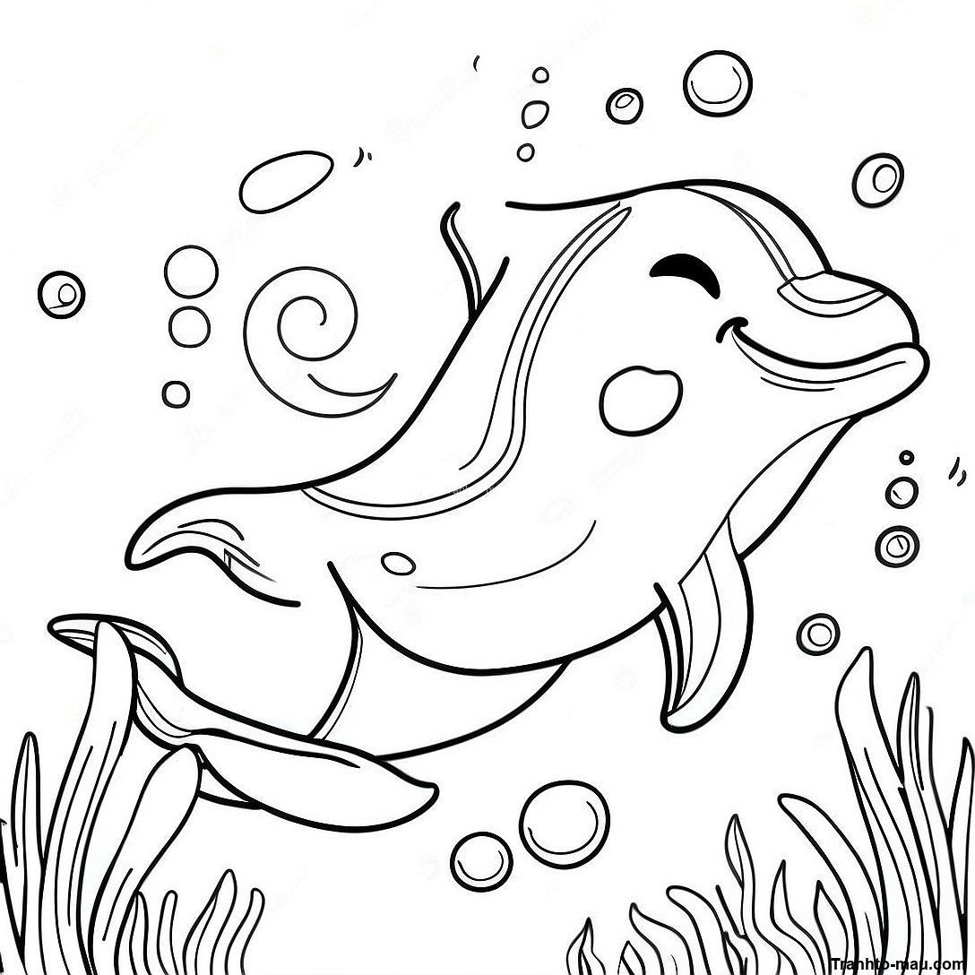 Tải xuống PDF có thể in của Trang Tô Màu Cá Heo Vui Vẻ Bơi Lội