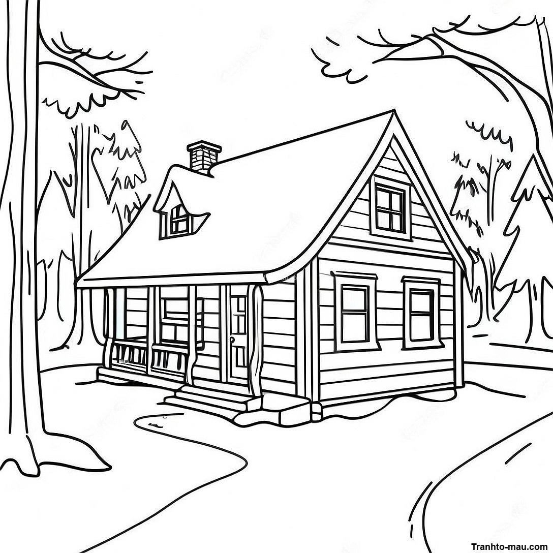 Trang Tô Màu Cabin Ấm Cúng Trong Tuyết