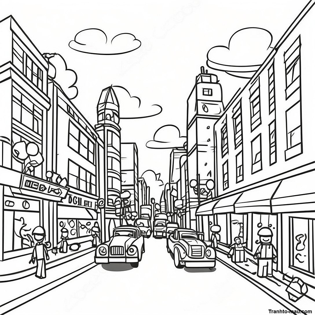 Trang Tô Màu Cảnh Đường Phố Bận Rộn Của Lego City