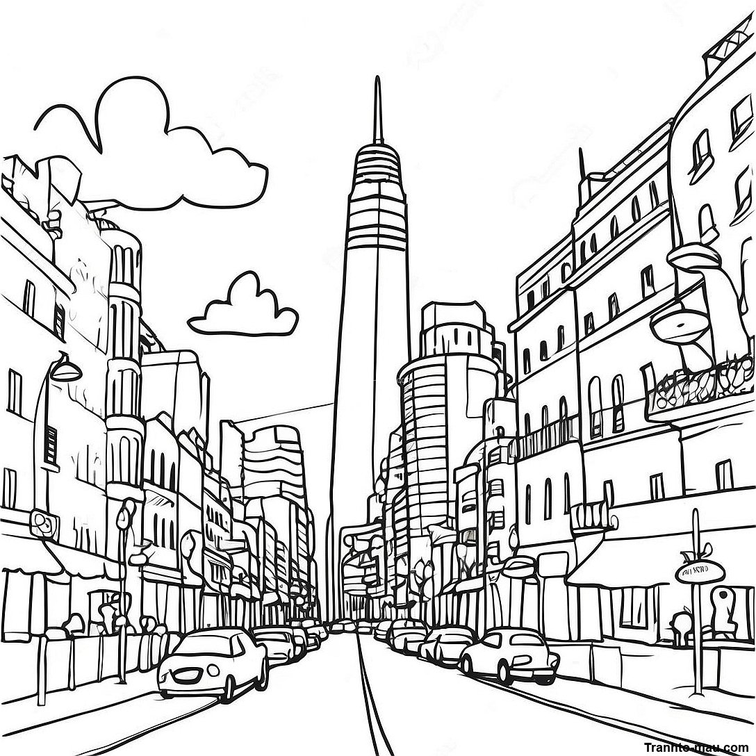 Tải xuống PDF có thể in của Trang Tô Màu Cảnh Thành Phố Buenos Aires Sống Động