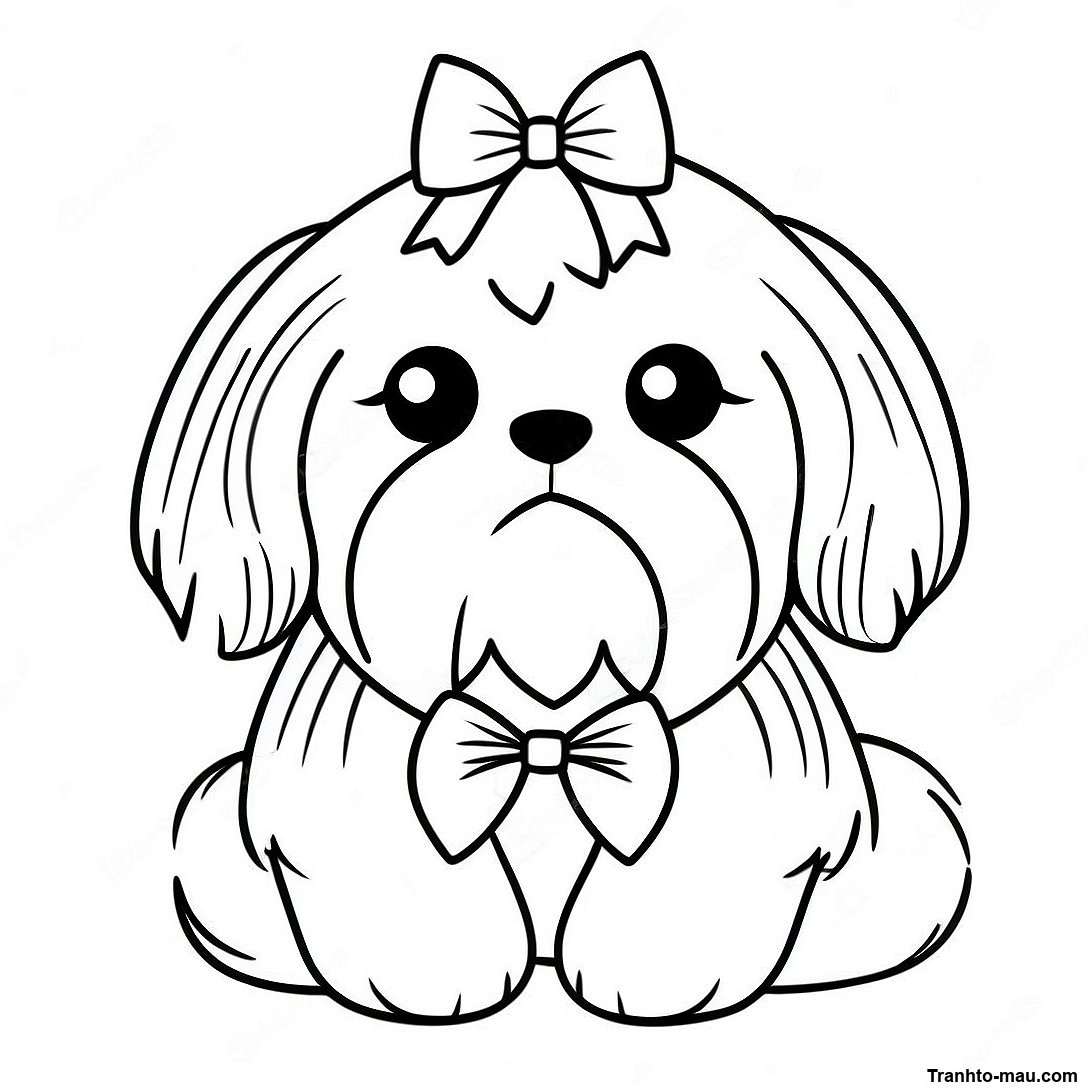Tải xuống PDF có thể in của Trang Tô Màu Chó Shih Tzu Bông Xù Với Nơ