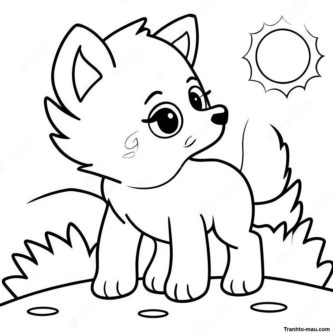 Trang Tô Màu Chó Sói Con Vui Vẻ Dưới Ánh Trăng