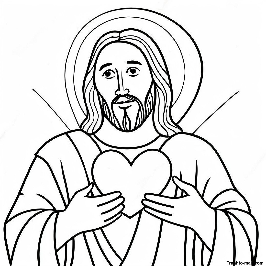Trang tô màu hình thánh giá đơn giản với trái tim