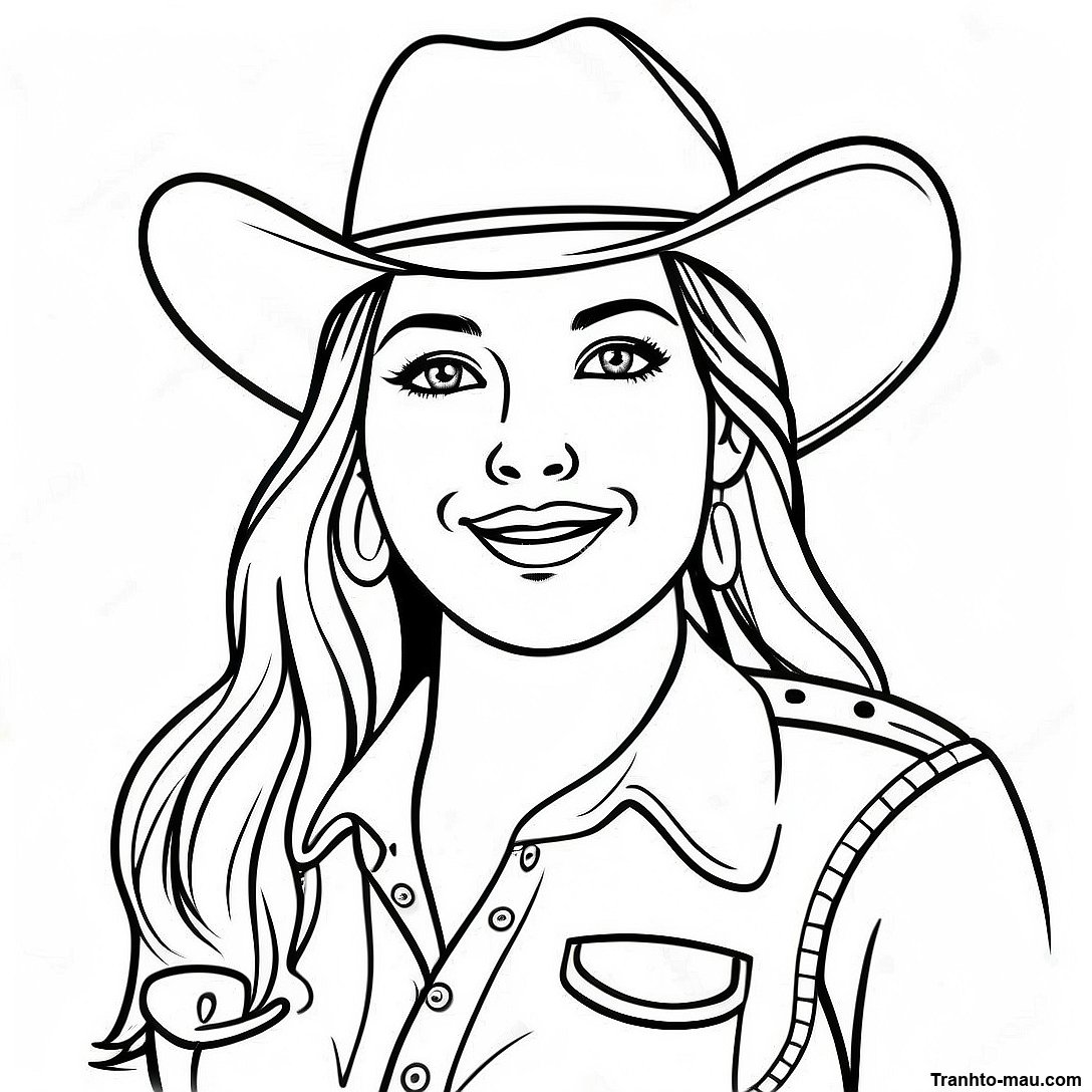 Trang Tô Màu Cô Gái Cao Bồi Vui Vẻ Trong Trang Phục Miền Tây