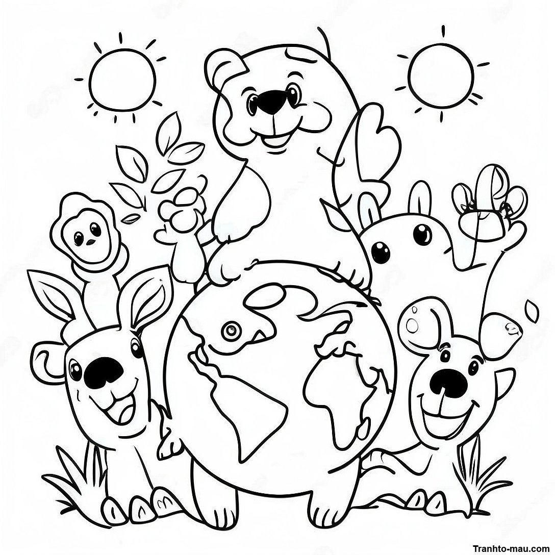 Trang Tô Màu Động Vật Vui Vẻ Chào Mừng Ngày Trái Đất