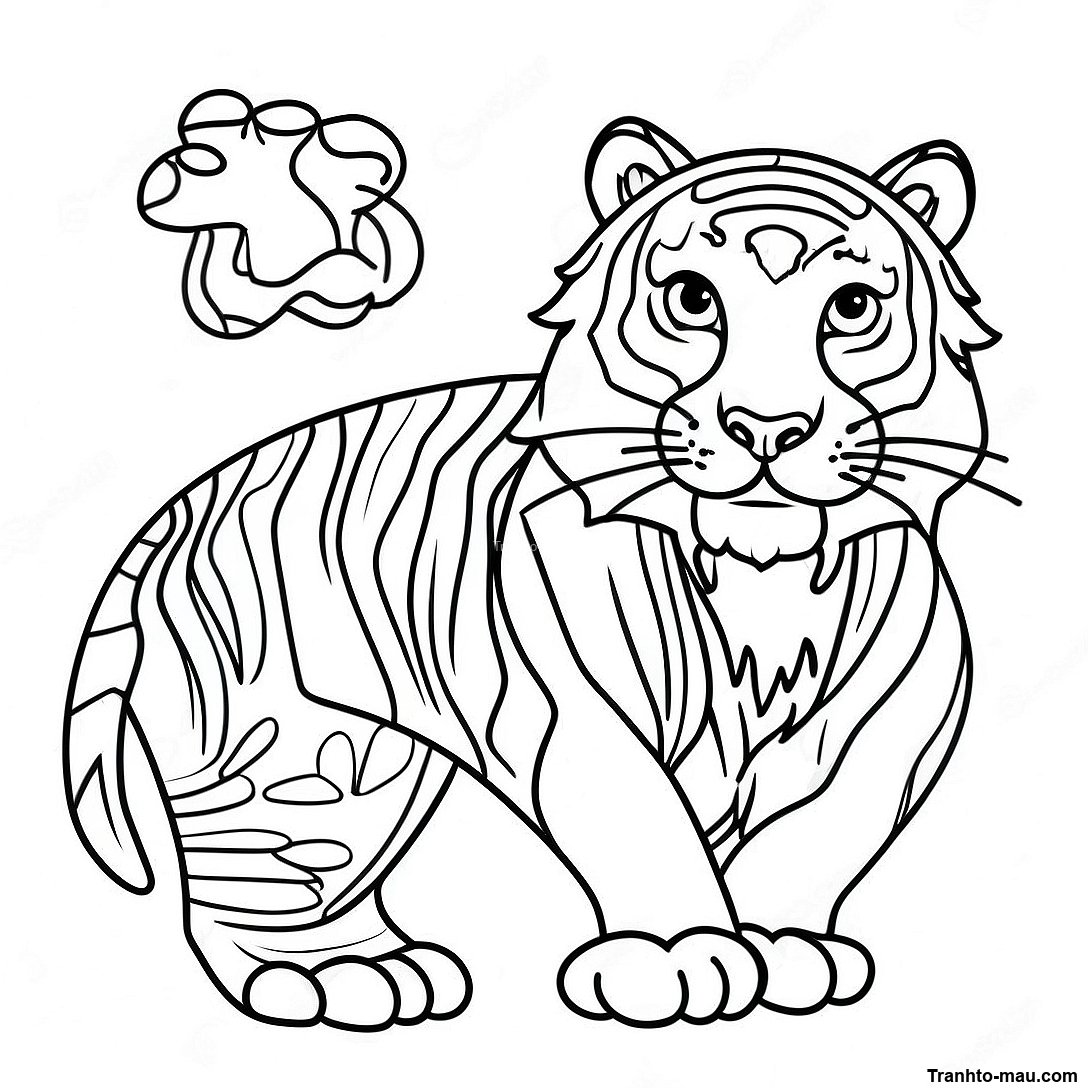 Tải xuống PDF có thể in của Trang Tô Màu Hổ Năng Động 12 Con Giáp