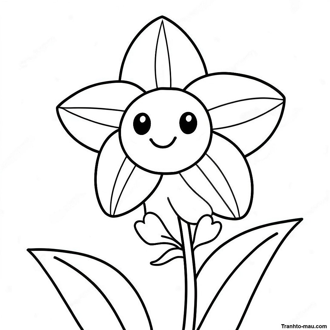 Trang Tô Màu Hoa Thủy Tiên Dễ Thương Với Khuôn Mặt Cười