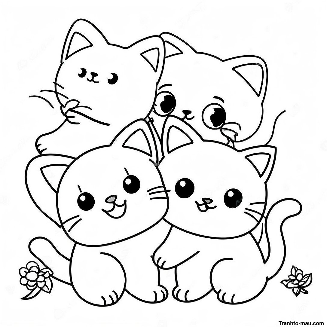 Trang tô màu mèo anime Kawaii đáng yêu