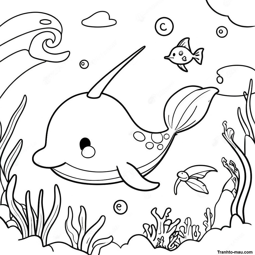 Trang To Mau Narwhal Phieu Luu Duoi Nuoc
