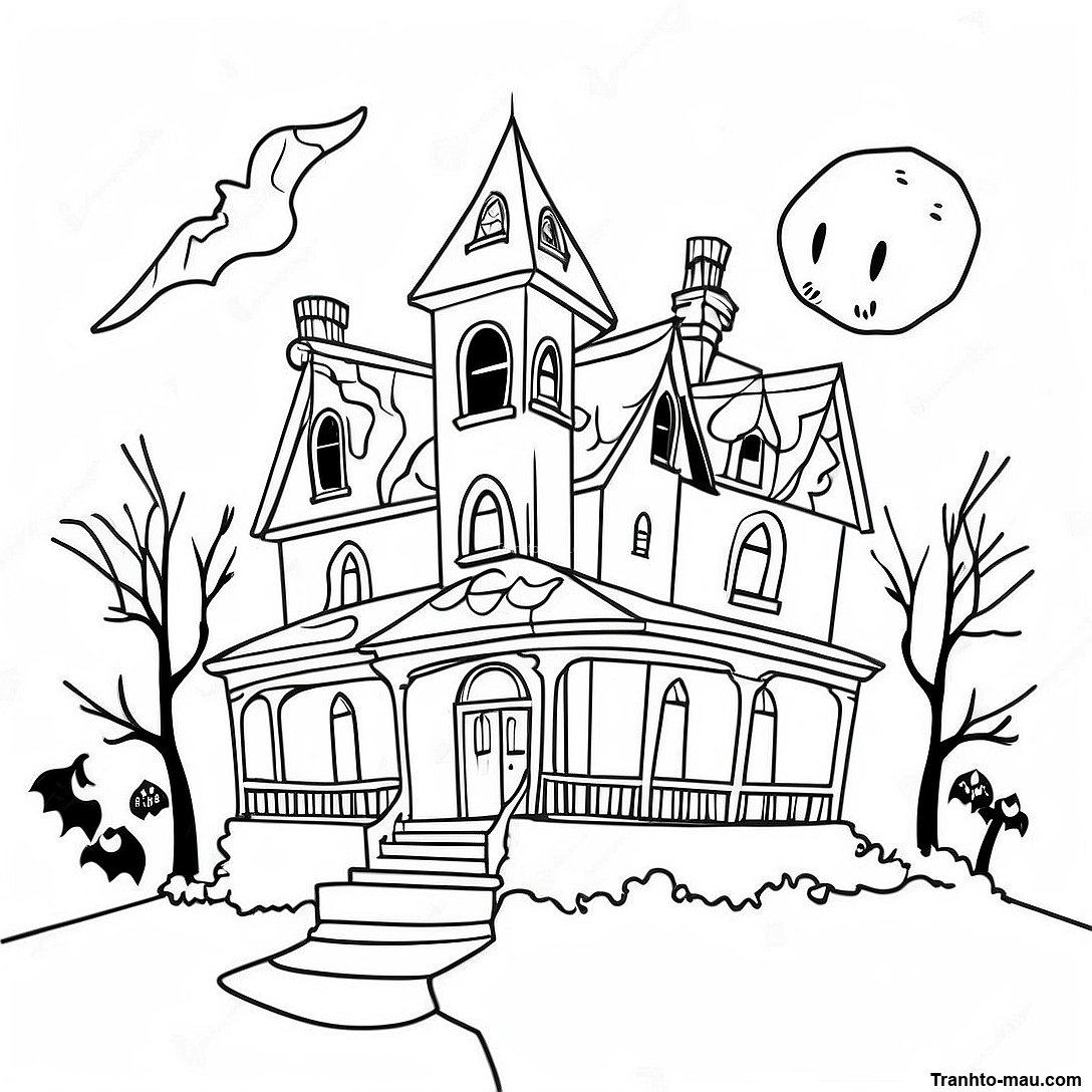 Tải xuống PDF có thể in của Trang Tô Màu Ngôi Nhà Ma Ám Đáng Sợ