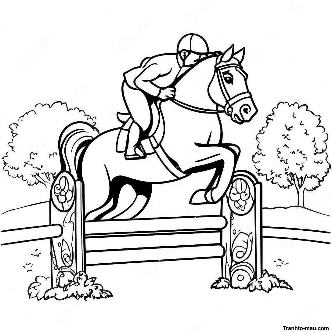Trang Tô Màu Ngựa Nhảy Qua Rào Hùng Vĩ