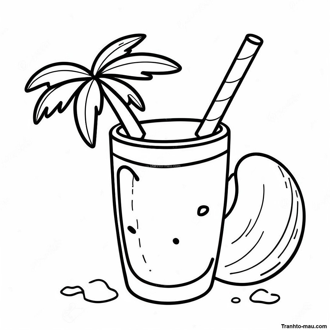 Tải xuống PDF có thể in của Trang Tô Màu Nước Dừa Với Ống Hút