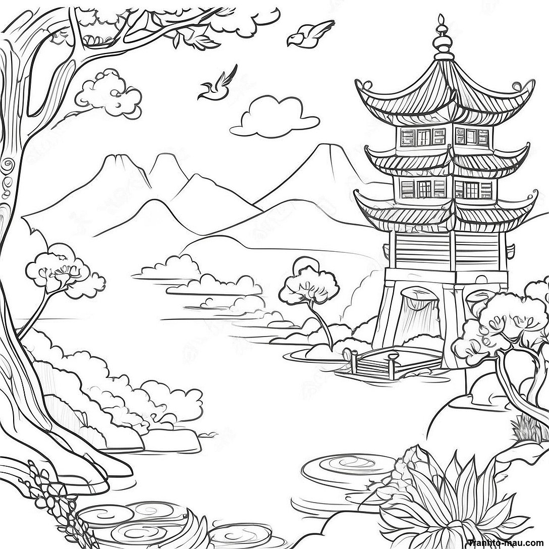 Tải xuống PDF có thể in của Trang Tô Màu Phong Cảnh Chinoiserie Tinh Xảo
