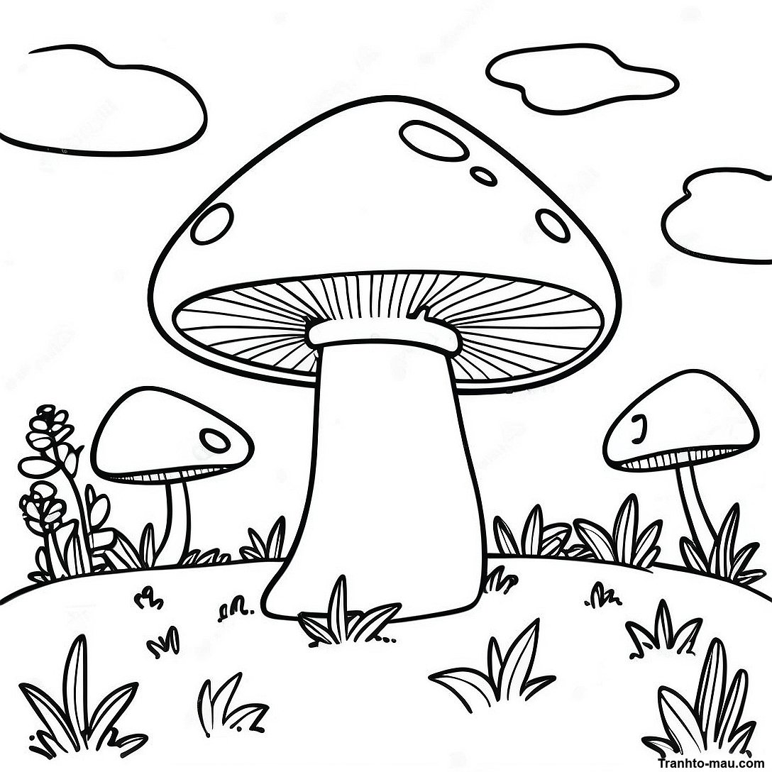 Tải xuống PDF có thể in của Trang Tô Màu Phong Cảnh Nấm Vui Nhộn