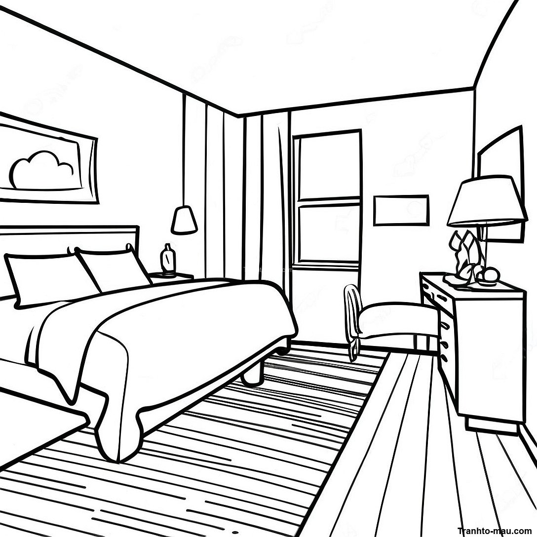 Tải xuống PDF có thể in của Trang Tô Màu Phòng Khách Sạn Ấm Cúng