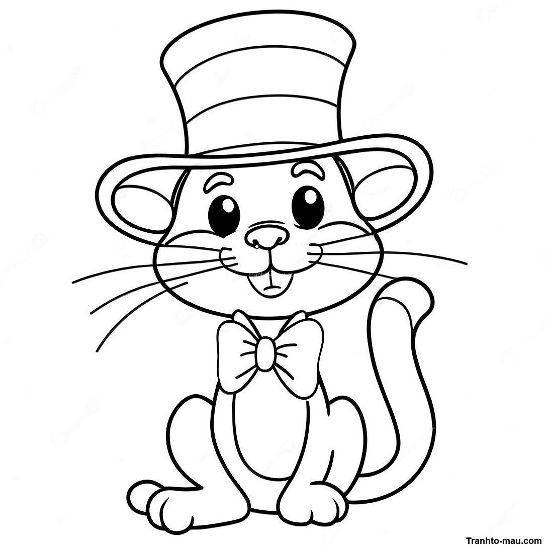 Trang Tô Màu Sinh Nhật Mèo Đội Mũ Vui Nhộn