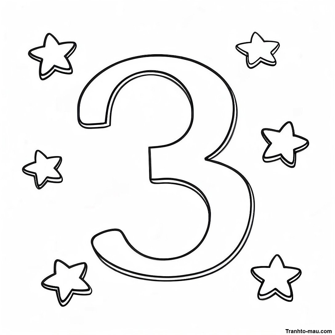 Tải xuống PDF có thể in của Trang Tô Màu Số 3 Nhiều Màu Sắc Với Sao