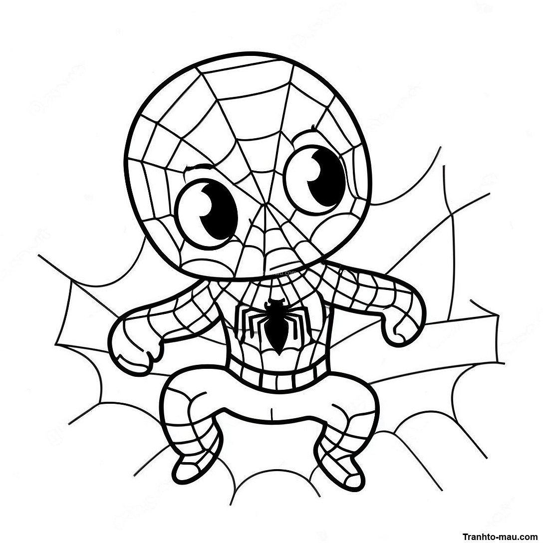 Trang Tô Màu Spiderman Em Bé Nhỏ Xíu Với Mạng Nhện